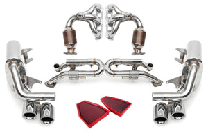 Complete high-performance exhaust & intake solution for the 991 Carrera; includes Maxflo Performance Side Exhaust, Valvetronic Center Muffler Bypass X-Pipe, Sport Headers / Race Headers, BMC Air Filters, & Deluxe Quad Style Tips with the optional COBB Accessport Tuner and ProTune Upgrade.