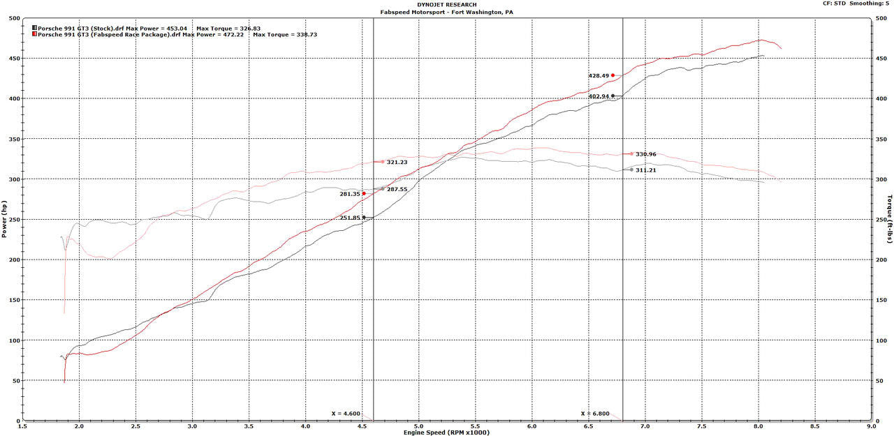 Fabspeed unique high-performance exhaust solution for the Porsche 991 GT3 / GT3 RS; fantastically daily-drivable sound and power from Fabspeed's Sport Performance Headers, Valved Side Muffler Bypass Pipes, BMC Air Air Filter, Deluxe Dual Style Tips and Fabspeed XperTune performance software.