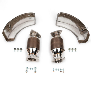 These sport cats feature German made HJS 200 cell EURO 6 EC certified compliant tri-metallic catalytic converters. We use enlarged piping from the engine side to the cat, and from the cat to the rest of the exhaust. These are the largest and highest flowing catalytic converters you can fit on the 2020+ Corvette C8. Larger catalytic converters are better because they allow for more exhaust flow and the increased catalysts surface area allows for better exhaust gas filtering which means emissions compliance and will NOT trigger a check engine light. Our Sport Cats are a direct bolt-on replacement for the factory C8 catalytic converters. Designed in collaboration and partnership with HJS Germany Emissions technology Fabspeed is HJS Germany's official partner for Corvette C8 licensed systems.