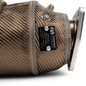 HJS German EMITEC 200CPSI catalytic converters can flow up to 90-93% of a straight pipe in most applications. The benefit is that you get the "straight pipe exotic sound" while still being able to provide enough emissions scrubbing to prevent a check engine light. DO NOT ASSUME ALL CATALYTIC CONVERTERS ARE THE SAME or EVIL PErformance killers. HJS EMITEC catalytic converters are 100% Guaranteed to make more power than any Illegal cat-bypass pipes even on Turbocharged engines with aftermarket high performance turbos. If you'd like to learn more, watch our video about HJS German catalytic converters.