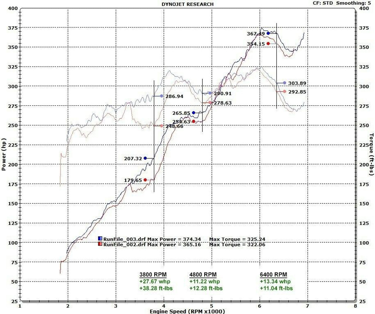 • Dramatic improvement in sports car sound and power throughout the RPM range; over 27 whp and 38 ft-lbs of torque at 3800 RPM