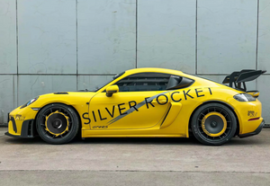 The Porsche 718 GT4 RS, compared to the 718 GT4, incorporates fender louvers and arch cuts to extract high-pressure air from the wheel arches, thereby increasing downforce on the front axle.